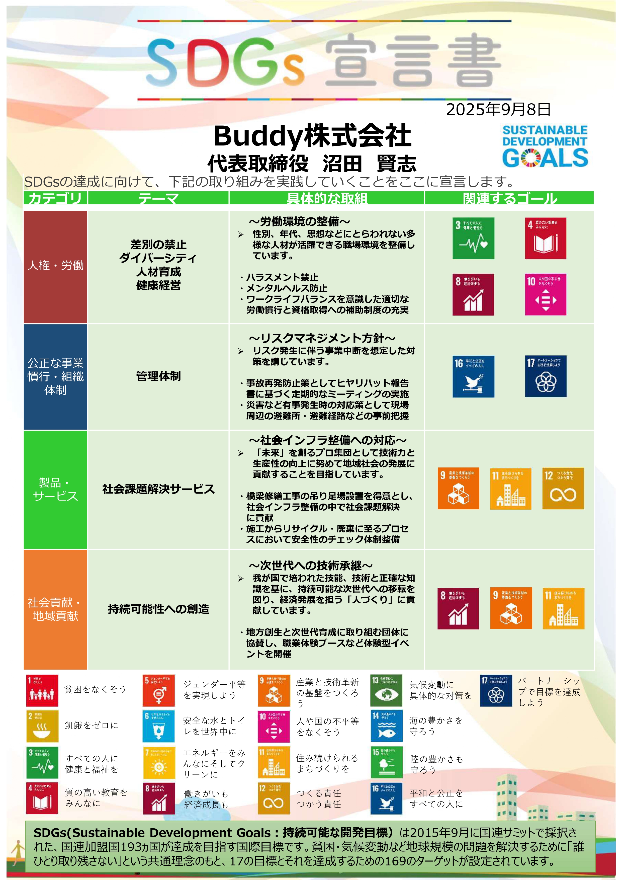 2025年9月8日付で「SDGs宣言書」を策定いたしました。